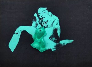 In his SILENT VIOLENCE series, Rikio Ohue effectively utilizes his own created original colors in forms such as deformed women, children, screaming faces, sunken eyes, and clinging animals to express feelings of anger, fear, unease, and despair that are caused by hidden violence of everyday life. The simple imagery he seeks to express has its presence further heightened through the repetitive effects of silkscreen printing. Furthermore, by making extensive use of collage techniques, he reaches to swiftly and precisely bring vivid images to life upon the canvas.